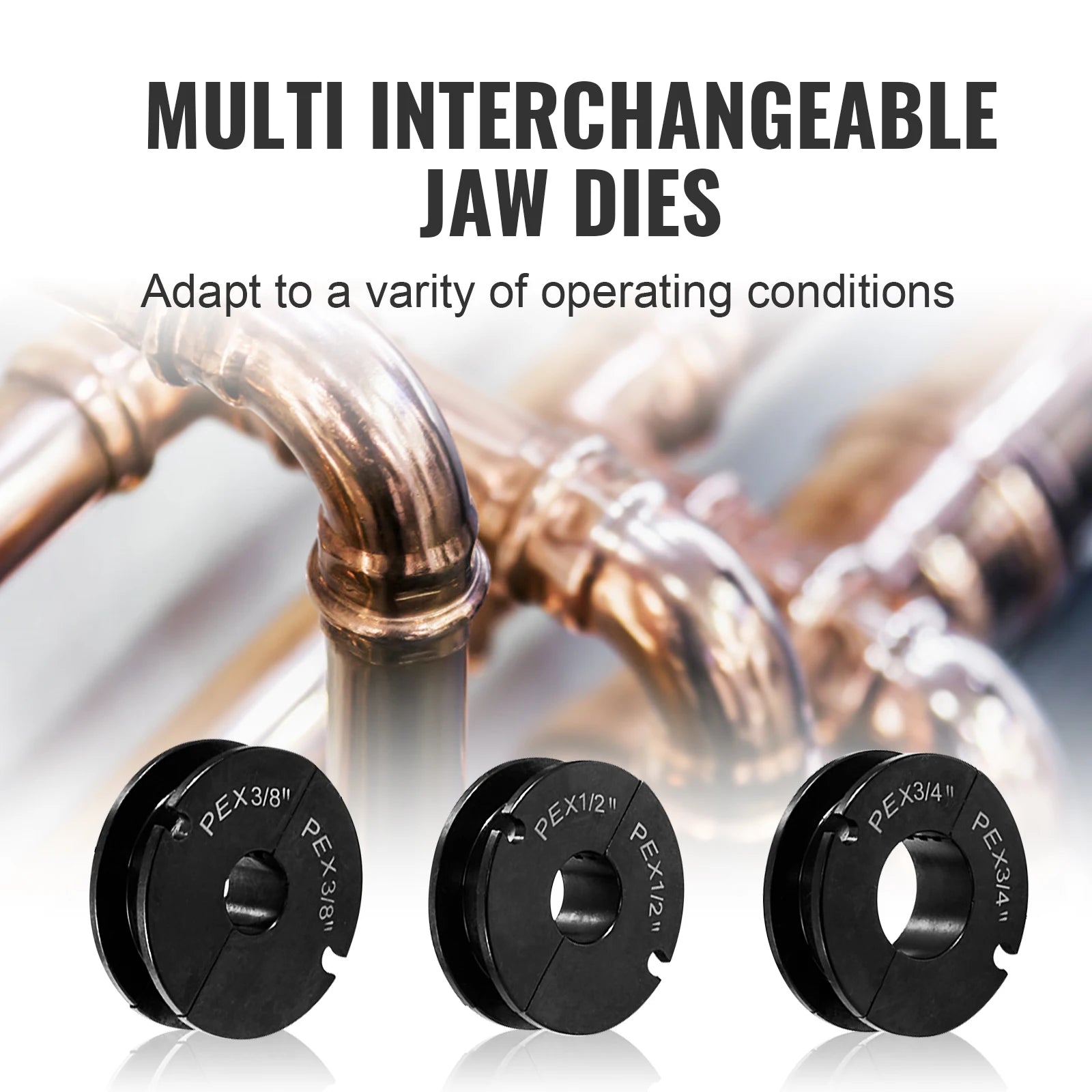 Kit de engarzado PEX profesional con troqueles, cortador y removedor de anillos de cobre 3/8" 1/2" 3/4"
