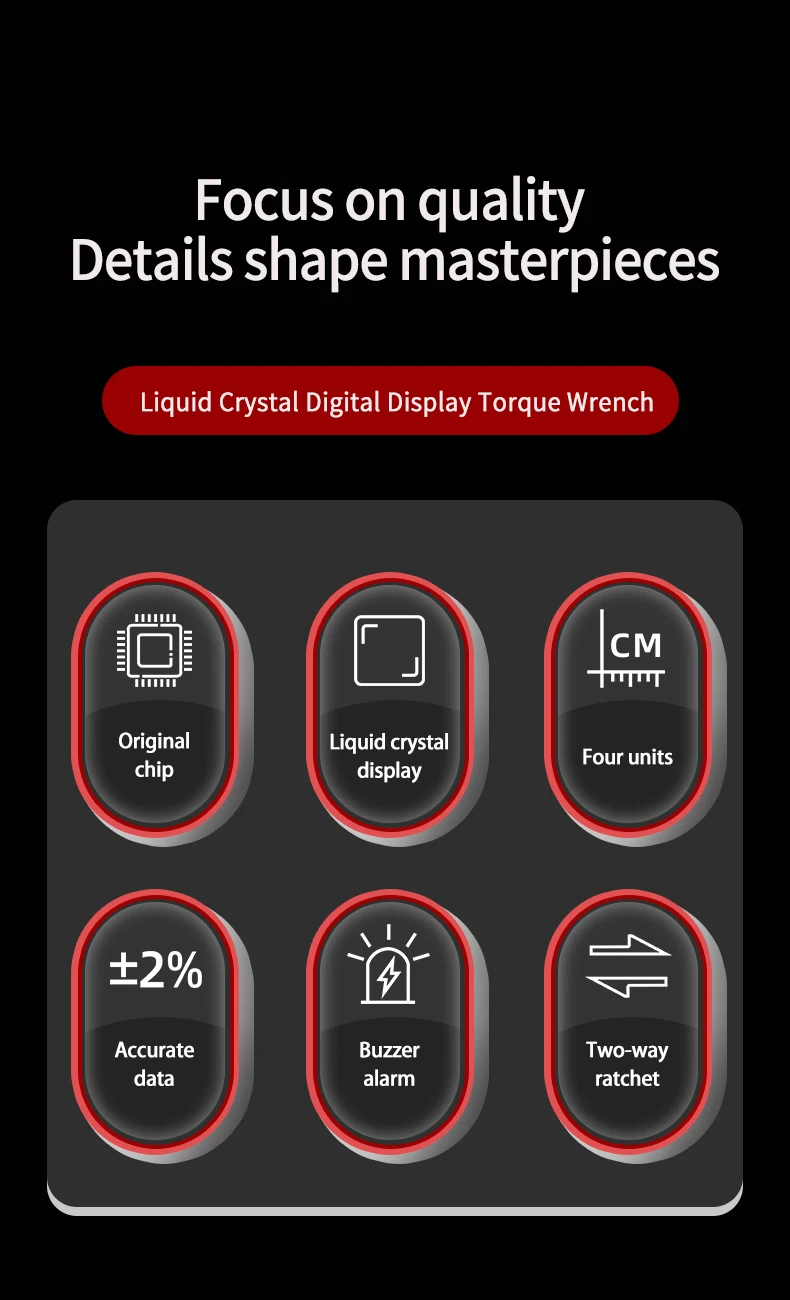 Pantalla digital LED retroiluminada: Visualiza claramente los valores de torque en cualquier entorno, incluso con poca luz, evitando errores de apriete.
