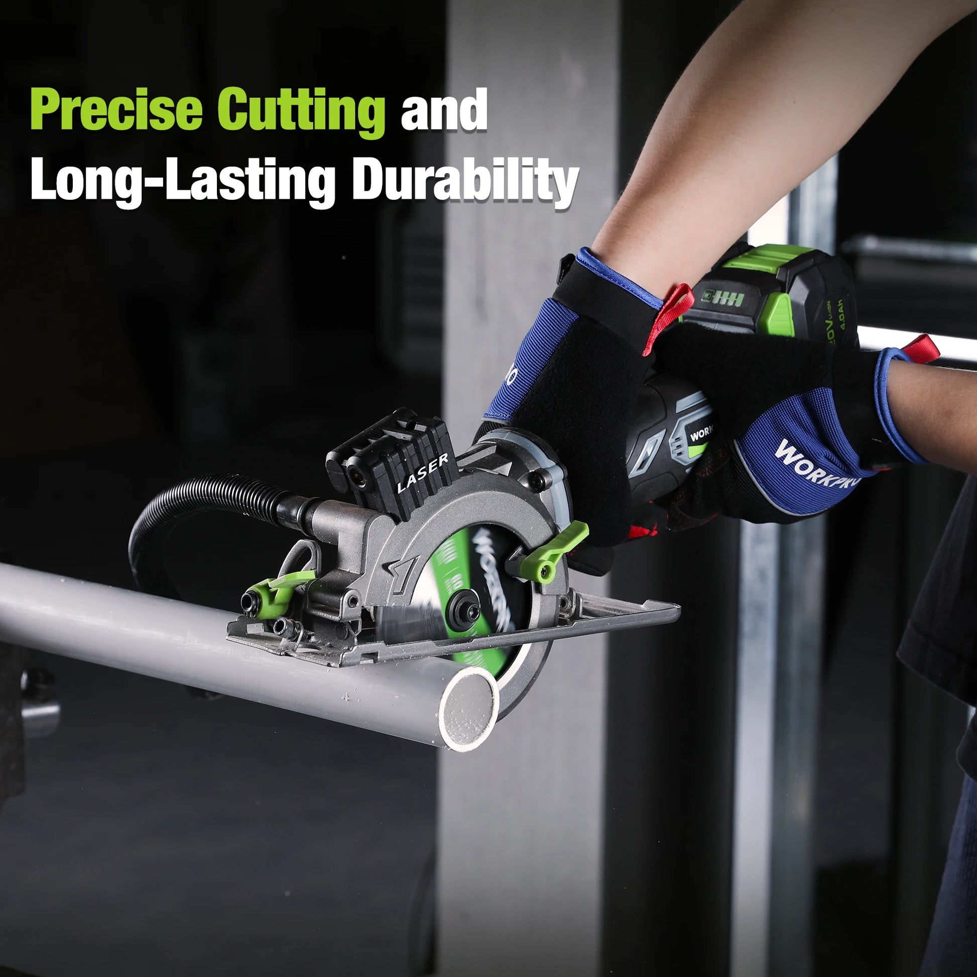 Sierra circular inalámbrica de 20V con láser, 115 mm, 4500 RPM, 4.0Ah, con 3 discos, guía paralela y bolsa de transporte